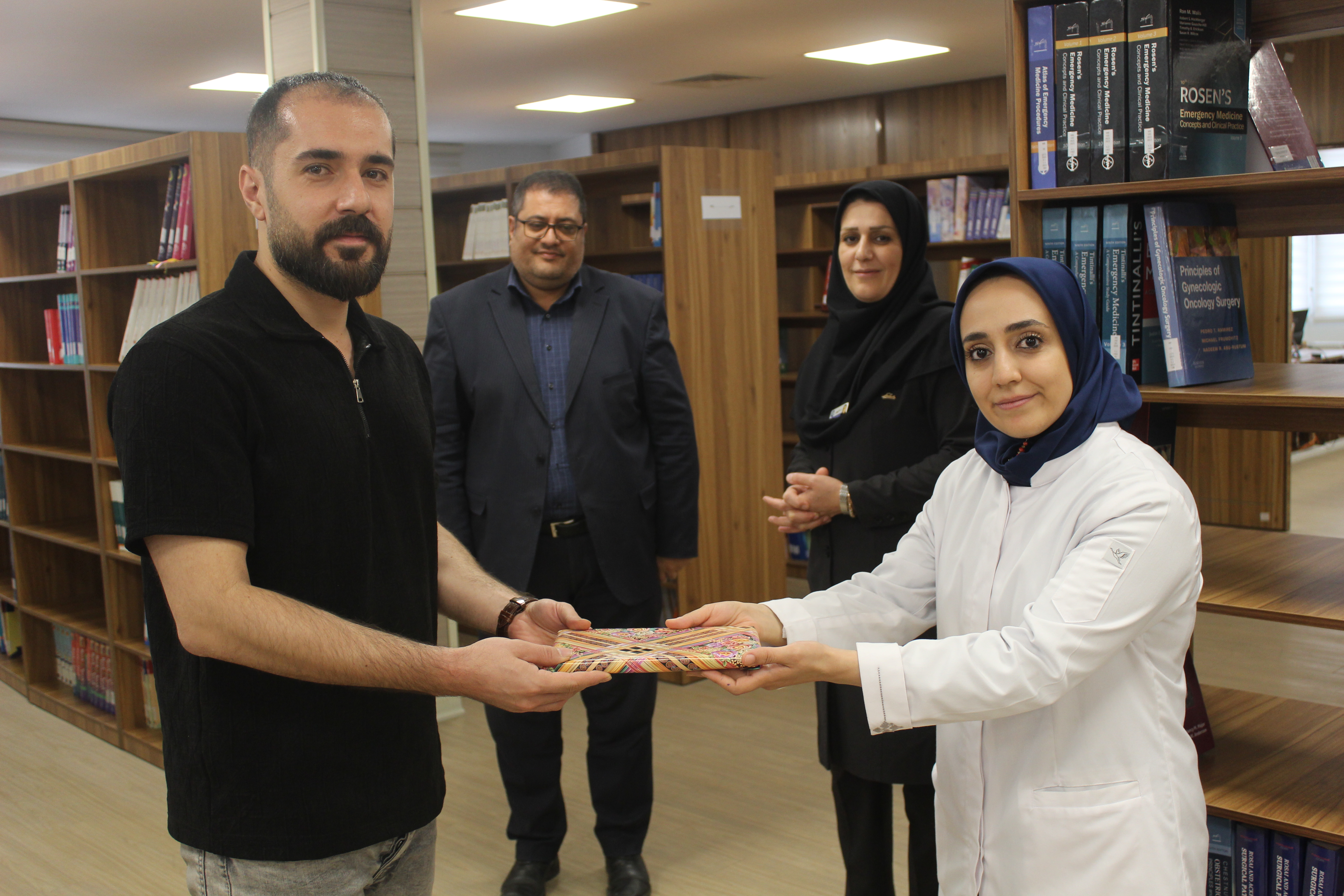 همچنین جهت ترویج فرهنگ کتابخوانی، از دو نفر از افرادی که ساعت مطالعه بالایی در کتابخانه داشتند با اهدای کادو تجلیل به عمل آمد.